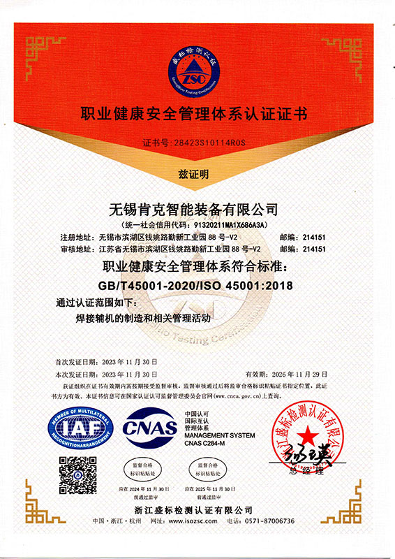 職業(yè)健康安全管理體系認(rèn)證證書(shū)